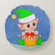 Cute Christmas Baby Elf on Light Blue Round Cushion