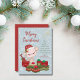 Seasonal Christmas Baby Monkey with Santa Hat & Green & Red Wrapped Presents Holiday Card