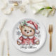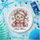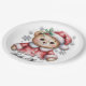 Cute Christmas Bear and Snowflakes Paper Plate