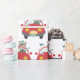 This cute and colourful wrapping paper features a whimsical winter themed illustration of an adorable bear and snowman driving in a red car. Personalise it with your name in a retro typewriter font. Great gift idea!