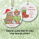 Here's a cute Christmas bears ornament that is fashioned for grandparents or parents to give a child. The front has a retro image of Mr. and Mrs. Christmas Bear dressed in a Santa hat, scarf, and winter coat in tones of green and red. At their feet is a brightly wrapped Holiday gift package, a candy cane, and a tree bulb. Your child's name is in matching red at the bottom. The back has an adorable image of a mouse in a polkadot stocking, and three more text fields for your customisation. This makes a nice keepsake to treasure through the years.