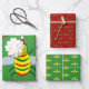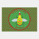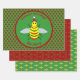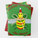 This awesome set of gift wrap features a cute yellow bee with shiny black eyes and black legs. The antennae are green and the stripes on the bee alternate between green and yellow. The bee is wearing a red and white hat and looks ready to celebrate Christmas.