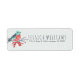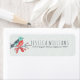 Cute Christmas bird in red turquoise and grey over light green tint snowflakes background pattern. Customisable Christmas return address label template.