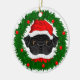 Cute Christmas Black Pug Santa in Wreath Ceramic Tree Decoration