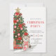 A festive Christmas gathering filled with joy, warmth, and a touch of nostalgia. The beautifully decorated tree, adorned with red poinsettias, glittering ornaments, and a golden star, stands as the centerpiece of the season’s cheer. At its base, a teddy bear wrapped with a bow and a vintage red toy truck add a sense of childhood wonder and tradition, evoking memories of timeless holiday celebrations. The design balances elegance with playfulness, making it special because it not only invites guests to a party, but also to step into a magical moment of togetherness, love, and festive delight.
