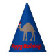 This awesome Christmas paper hat features a digital art image of a cute sandy brown coloured Dromedary Camel with beautiful long eyelashes and a single hump on its back. The camel is dressed ready for celebrating Christmas with a red and white Santa hat on its head. The camel features in the Bible and is a traditional symbol of Christmas. There is custom text s you can include a message. The default message reads Happy Holidays.