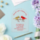 This awesome acrylic Christmas Party invitation features a pretty pair of Northern Cardinals. The male bird is bright red with a red crest on its head and the female bird is a brownish yellow colour with some red on her wings and tail. Both birds have a red beak. The birds are standing on a brown branch covered in festive red berries making this a beautiful Christmas design, especially for couples. There is custom text so you can personalise this design with all the party details.