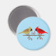 This awesome magnet features a pretty pair of Northern Cardinals. The male bird is bright red with a red crest on its head and the female bird is a brownish yellow colour with some red on her wings and tail. Both birds have a red beak. The birds are standing on a brown branch covered in festive red berries making this a beautiful Christmas design, especially for couples.