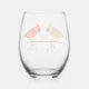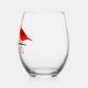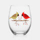 Cute Christmas Cardinals and Red Berries Stemless Wine Glass