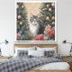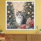 Cute Christmas Cat Amid Flowers and Trees Canvas Print