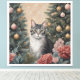 This captivating poster features a charming gray tabby cat nestled among vibrant Christmas trees and delicate flowers. Bathed in soft, gentle lighting, it exudes a modern Christmas decor charm. Perfect for cat lovers, it’s a delightful piece of tabby cat art, showcasing an irresistibly cute cat – an ideal choice for both home decor and heartwarming gifts.