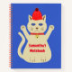 This awesome spiral notebook features a digital art image of a cute Christmas Siamese Cat with beautiful blue eyes, brown claws, ears and whiskers and its front paws raised in the air. The cat is wearing a red collar with pretty white snowflakes on it and a beautiful golden bell. The cat is wearing a warm red bobble hat with white snowflakes on it to keep it warm in the winter cold. There is custom text so you can include a name.