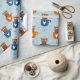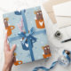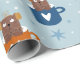 Cute Christmas Cat in a Mug Blue Snowflake Wrapping Paper