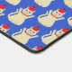 This awesome desk mat features a digital art image of a cute Christmas Siamese Cat with beautiful blue eyes, brown claws, ears and whiskers and its front paws raised in the air. The cat is wearing a red collar with pretty white snowflakes on it and a beautiful golden bell. The cat is wearing a warm red bobble hat with white snowflakes on it to keep it warm in the winter cold.