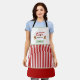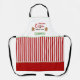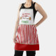Cute Personalised Christmas cookie baking team apron with gingerbread cookie man and red and white candy cane pattern.