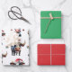 Cute Christmas Cow and Bull Plus Solids Green Red Wrapping Paper Sheet
