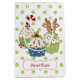 This personalised holiday gift bag features three cute holiday cupcakes which decorate each side. Each is decorated with a different holiday theme, and placed on a green and white polkadot background. One has a holly berry topping, one a red and white striped candy cane, and one a reindeer. The bottom right has your child's name in red within a red border. Bright, colourful, and fun for your holiday party. Adorable! The other side has the same image, but the text may be different, if you'd like. *Thanks to Real Deal Clipart for the clipart used to create this design. http://realdealclipart.com *