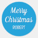 Cute Christmas Custom Kids Name Typography Blue Classic Round Sticker