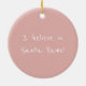 Create a unique custom photo ornament with your pet's portrait! This cute design features a paint brushstroke frame, perfect for showcasing a favorite picture of your dog, cat, or someone special — a unique keepsake gift for pet lovers, family, and friends. The template includes stylish handwritten typography, with the phrase “I believe in Santa Paws!”, but you can easily personalize the text to feature your own quote, name, or message. Additionally, the background color can be customized; use the design tool to edit the color and match your holiday décor. Printed colors: soft pink and white.