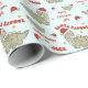 Cute Christmas wrapping paper with a Christmas dinosaur Santasaurus wrapping in Christmas lights with Santa hat on the light blue background. Easily personalise the text - Kate Eden Art