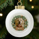 Cute Christmas Dog Photo Wreath Name Holiday Ceramic Ball Christmas Ornament