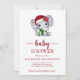 Cute Christmas Elephant Baby Shower Invitation featuring an adorable baby elephant in a cute Santa hat of red and green. Perfect for your winter or holiday Baby showers! Please contact us at cedarandstring@gmail.com if you need assistance with the design or matching products.