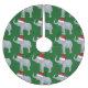 This beautiful Christmas elephant tree skirt features two beautiful smiling elephants wearing red Santa hats and greeting each other with raised trunks. This pretty personalised gift is decorated with a lovely green holiday background.