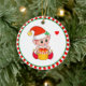 Cute Christmas elf holding a gift box on white and red Ceramic Ornament.