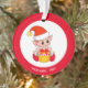 Cute Christmas Elf, Custom Name on Red & White Ornament