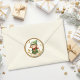 Send your holiday cards and invitations with this faux wax seal sticker featuring a cute Christmas elf on a leaf background. The perfect envelope seal this holiday season.