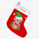 Cute Christmas elf & gift box on red Large Christmas Stocking