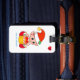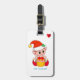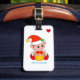 Cute Christmas elf holding a gift box and red heart on white Luggage Tag. All texts ready to be personalised.