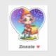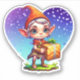 Cute Chibi cartoon Christmas elf holding a gift in the snow sticker.