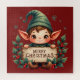 Cute Christmas Elf Holding Merry Sign Red Jigsaw Puzzle