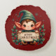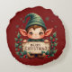 Cute Christmas Elf Holding Merry Sign Red Round Cushion