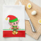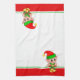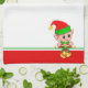 Cute Christmas Elf on Green, Red and White Tea Towel