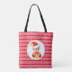 Cute Christmas elf on red and white Tote Bag.