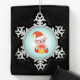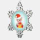 Cute Christmas Elf on Teal Blue Snowflake Pewter Christmas Ornament