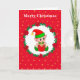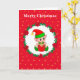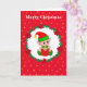 Cute Christmas Elf, Pine Wreath & Stars Card