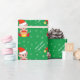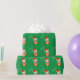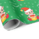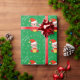 Cute Christmas Elf & Snowflakes on Green Wrapping Paper