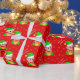 Cute Christmas Elf & Snowflakes on Red Wrapping Paper