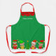 Cute Christmas Elf Squad & Poinsettias on Green Apron