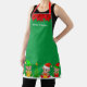 Cute Christmas Elf Squad & Poinsettias on Green Apron. Happy Holidays text can be personalised.