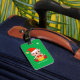 Cute Christmas elf holding a gift box and star on green Luggage Tag. All texts ready to be personalised.