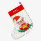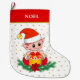 Cute Christmas elf, stars, poinsettia & pine Large Christmas Stocking