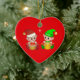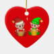 Cute Christmas elves on red background Ceramic Ornament. Elves are believed to be earth angels! Have a wonderful Christmas!