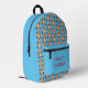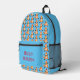 This awesome backpack features a digital art image of a cute Christmas Fox. The fox is orange with white with a bushy tail, black whiskers and a black nose. It also has beautiful yellow eyes. and is wearing a red and white Santa hat on its head. There is custom text so you can include a message. The default message reads happy holidays.