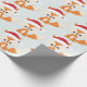 Cute Christmas Fox Santa Hat Pastel Blue Pattern Wrapping Paper