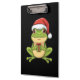 Cute Christmas Frog with Santa Hat Holding Gift - Clipboard