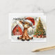 Cute Christmas Giraffe with a red barn and Christmas trees Postcard